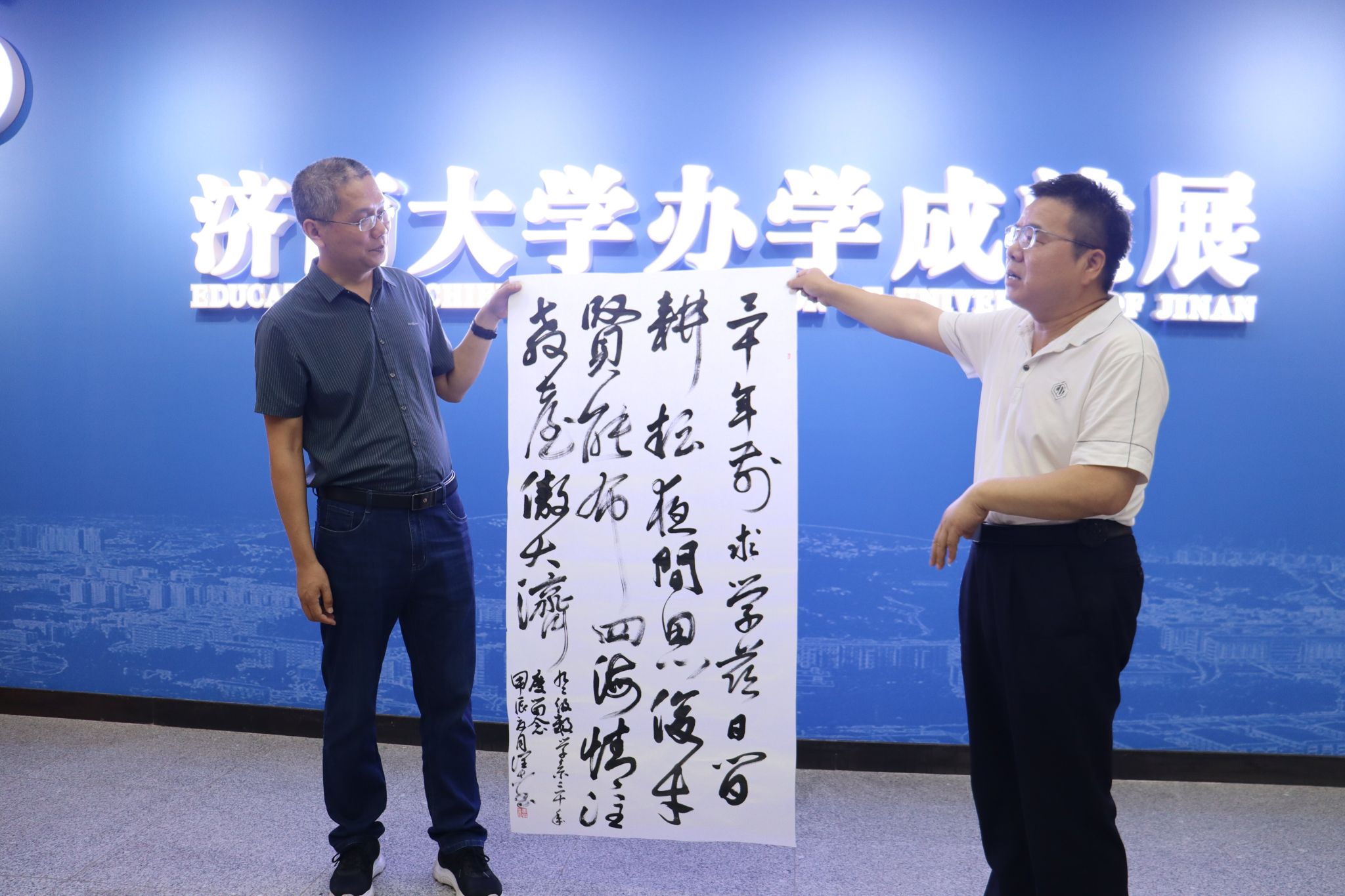校友代表、班长张林代表班级向学院捐赠了自己亲手撰写的书法作品,饱含了对母校的深厚情谊,寄托了对母校未来发展的美好祝愿。