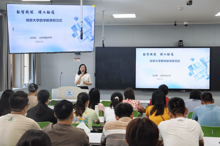为进一步弘扬教育家精神、强化师德师风和新时代高素质专业化教师队伍建设,提升我院教师教学能力和数字素养,2024年教师节之际,学院邀请山东省教学名师、山东省示范性基层教学组织负责人、山东科技大学刘洪霞教授作题为“数智赋能 理工融通——探索大学数学教学新范式”的学术报告。学院党委书记崔英静出席报告会,学院各系部教师参加报告会,会议由学院副院长王洪凯主持。