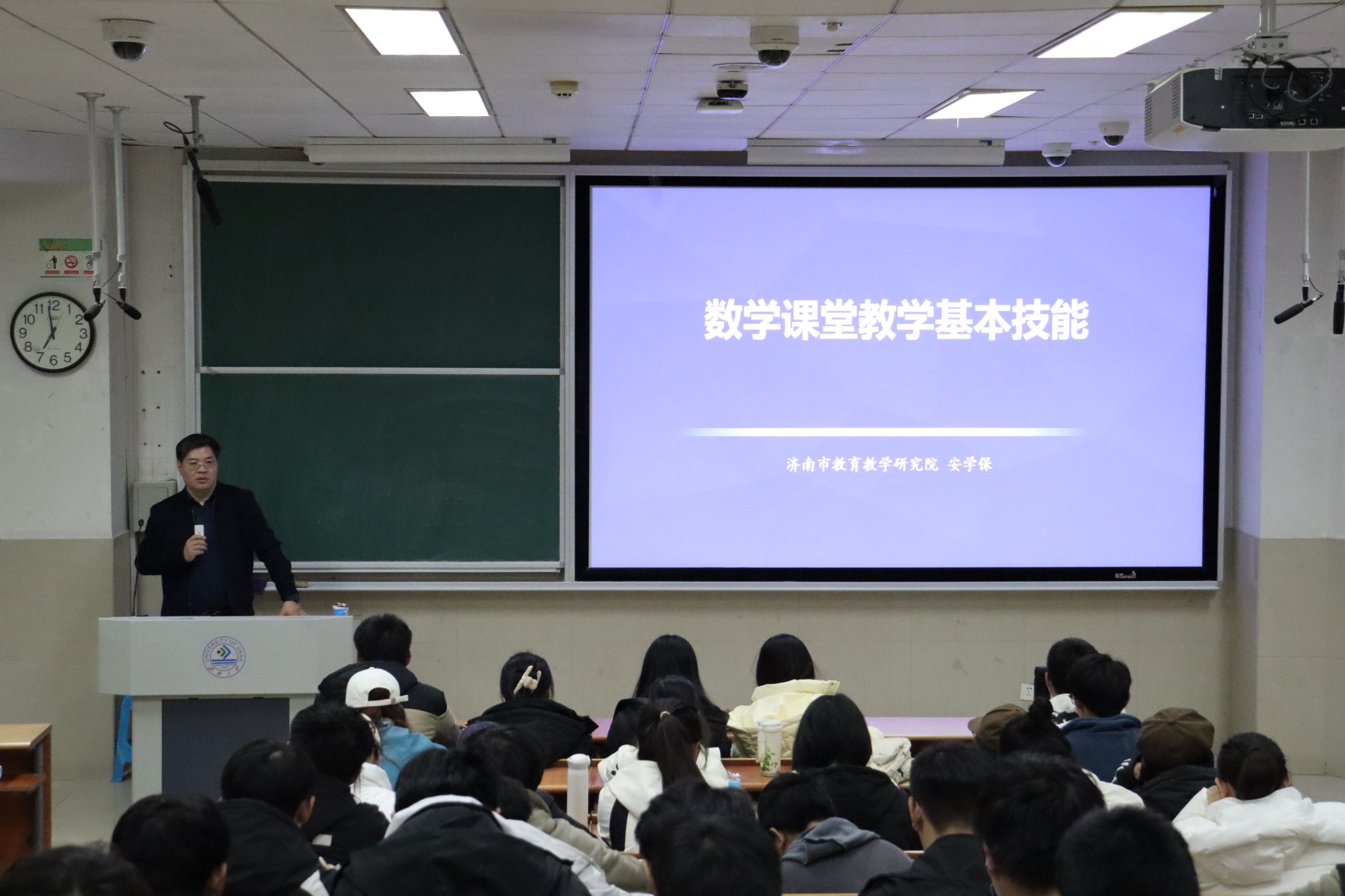 “师心铸智海,桃李自成蹊。”为加强数学与应用数学师范类专业学生专业素养,11月5日,williamhill英国特邀济南市教育科学研究院高中数学教研员安学保老师作“数学课堂教学基本技能”的主题报告,学院数学与应用数学专业学生参加活动,数学与应用数学系主任陈文娟教授主持报告会。