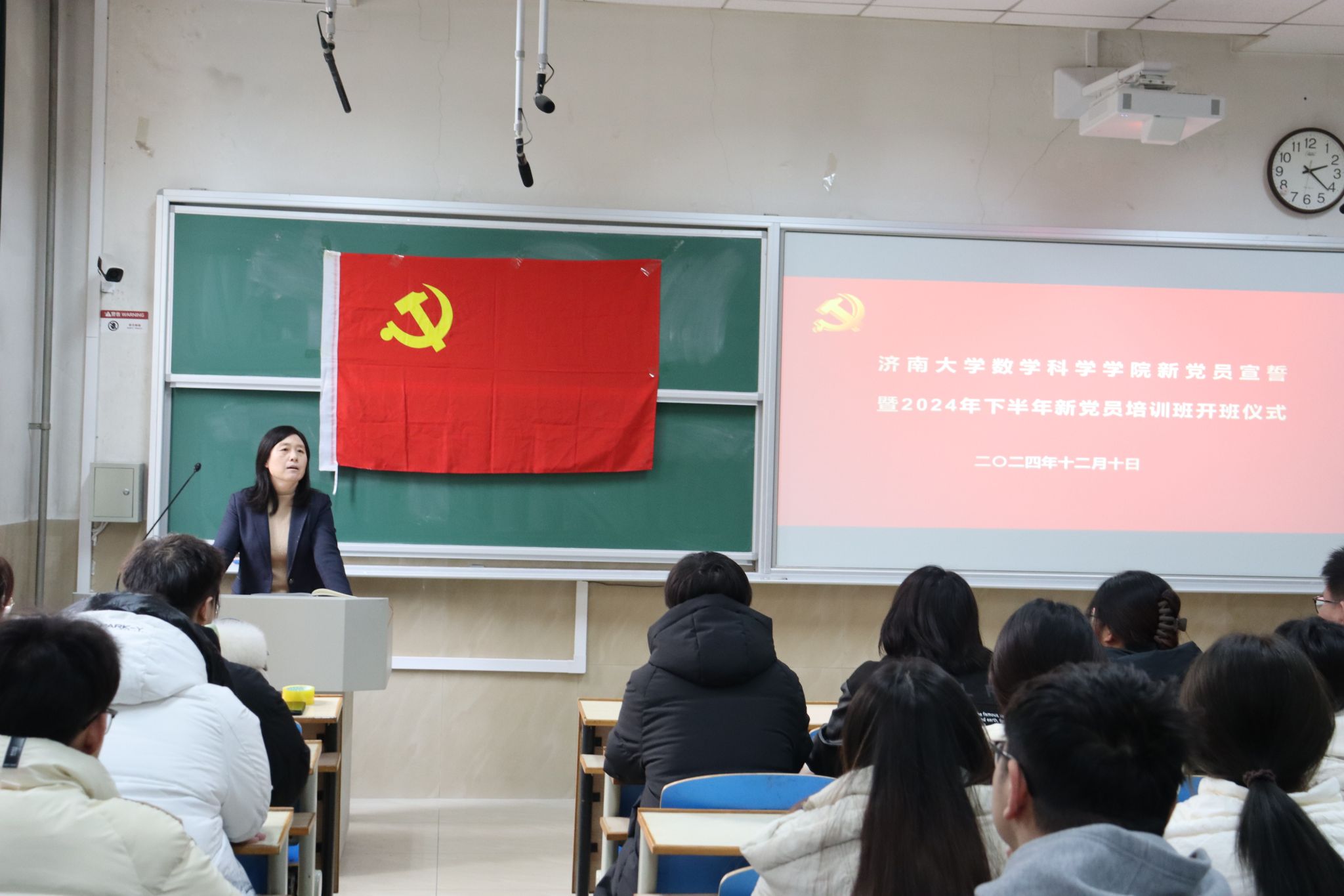 崔英静向在座的每一位怀揣梦想、勇于担当的学生党员表示热烈的欢迎和衷心的祝贺,并提出几点希望和要求:一是坚定信念,做信仰的守护者。要用实际的行动来诠释对党的忠诚,对信仰的坚守,让党的光辉照亮我们校园的每一个角落;二是坚韧学习,做知识的追求者。要以饱满的热情投入到专业的学习当中,提升自己的专业水平以及综合能力;三是勇于实践,做思想的践行者。积极参加志愿服务活动,将所学的知识运用到实践当中去,锻炼自己的能力,发挥党员的先锋模范的带头作用;四是严于律己,做品德的示范者。要以更高的标准要求自己,时刻保持清醒的头脑和坚定的立场。五是从培训目标、培训内容、学习形式、考核方式等方面对本次新党员培训班的学习提出要求,希望各位学员端正态度,自觉遵守各项规定,认真完成本次培训课程,筑牢理想信念、夯实理论基础,在每一名合格共产党员的成长锻炼中不断升华自己的初心使命。