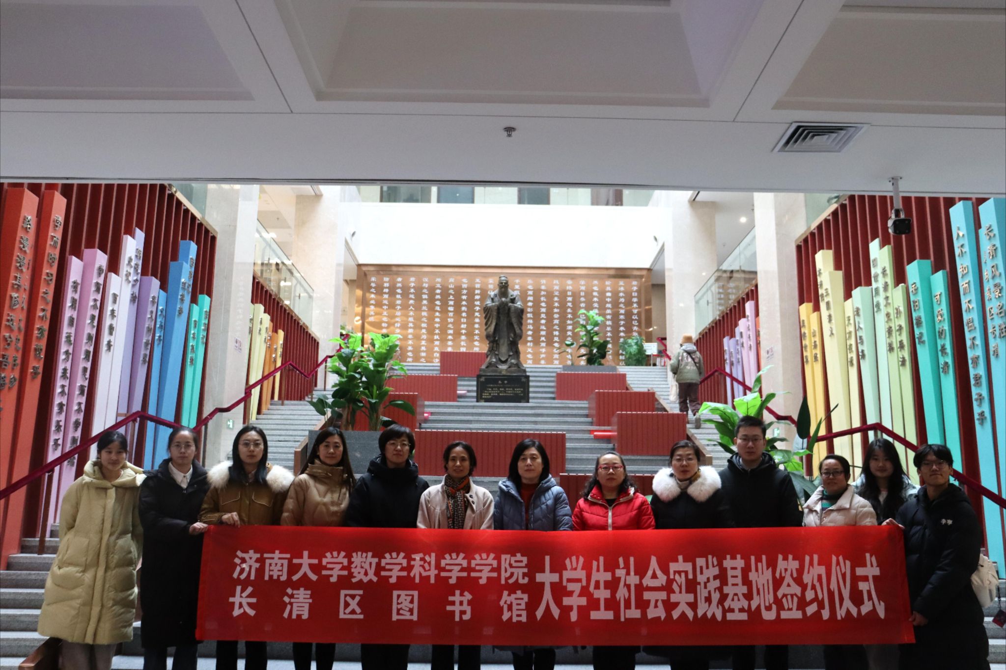 2025年1月11日下午,williamhill英国与长清区图书馆共建大学生社会实践基地签约挂牌仪式在长清区图书馆举行。长清区图书馆馆长杨洪霞、williamhill英国党委书记崔英静、双方相关工作人员及学生代表参加活动。