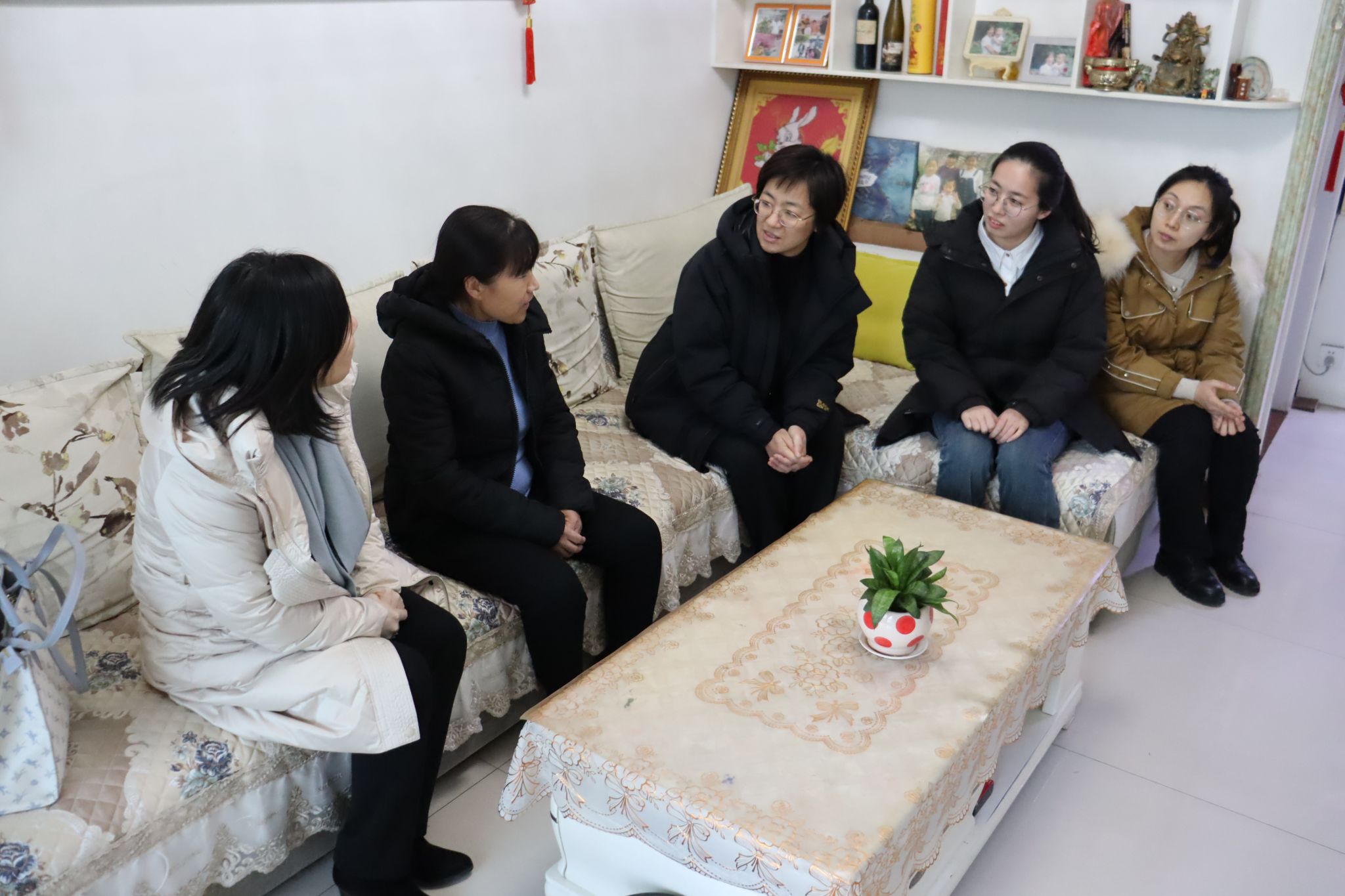 1月14日,王霞一行来到长清区孝里街道的一名大四困难毕业生家里,与学生家长围坐在一起亲切沟通交流,并送上慰问金和新年慰问品,传递学校的暖心关切和新春祝福。当得知在家庭收入微薄的情况下培养出两名研究生时,王霞对良好的家风表示高度赞赏,并鼓励学生在未来的研究生生涯中继续发扬勤勉向上的精神,不负众望,以优异成绩回报家庭和社会的期待。