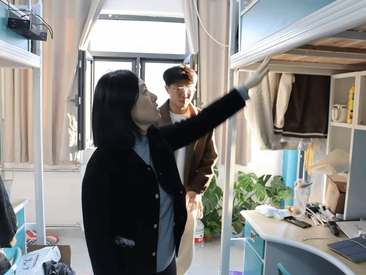 在学生公寓,学院领导与老师围绕用电规范、消防设施状态、物品收纳及卫生情况进行仔细查看。每到一间宿舍,老师们既细致排查安全隐患,又关切询问学生“平时宿舍里暖气够不够?”等实际问题,从居住舒适度到学习便利度,全方位了解学生在校生活状态。针对排查发现的问题,老师们耐心解读隐患背后的安全风险,结合宿舍生活实际给出可操作的整改建议,在强化规范管理的同时传递深切人文关怀,让此次检查成为深化师生沟通、凝聚育人合力的重要契机。