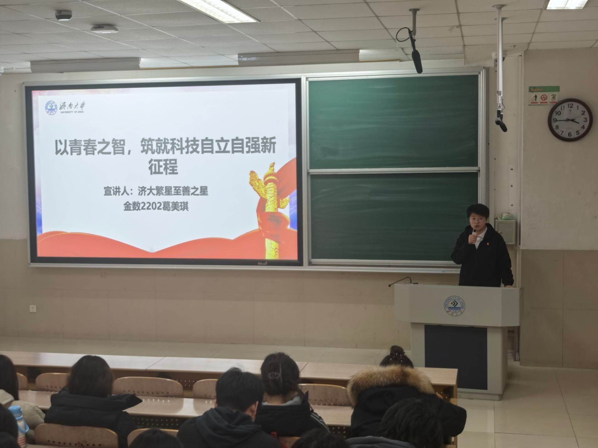 本次宣讲活动内容丰富深刻、紧扣时代脉搏。音乐学院学办主任王栋以“以青春之力筑牢文化根基拓宽文明传播之路”为题,从文化传承与创新角度,阐述青年在守护中华优秀传统文化、推动文明交流互鉴中的责任;材料学院辅导员王润围绕“以高水平科技自立自强为引擎奋力谱写发展新质生产力时代篇章”展开分享,结合学科特色剖析科技自立自强对发展新质生产力的重要意义,鼓励青年投身科研创新;williamhill英国学办主任房琳琳以“青春逐梦新征程挺膺担当向未来”为主题,寄语青年学子将个人理想融入时代发展洪流,以实干笃行书写青春答卷;葛美琪同学以“以青春之智,筑就科技自立自强新征程”为题,分享自身成长经历,展现青年一代在科技领域的探索与担当。