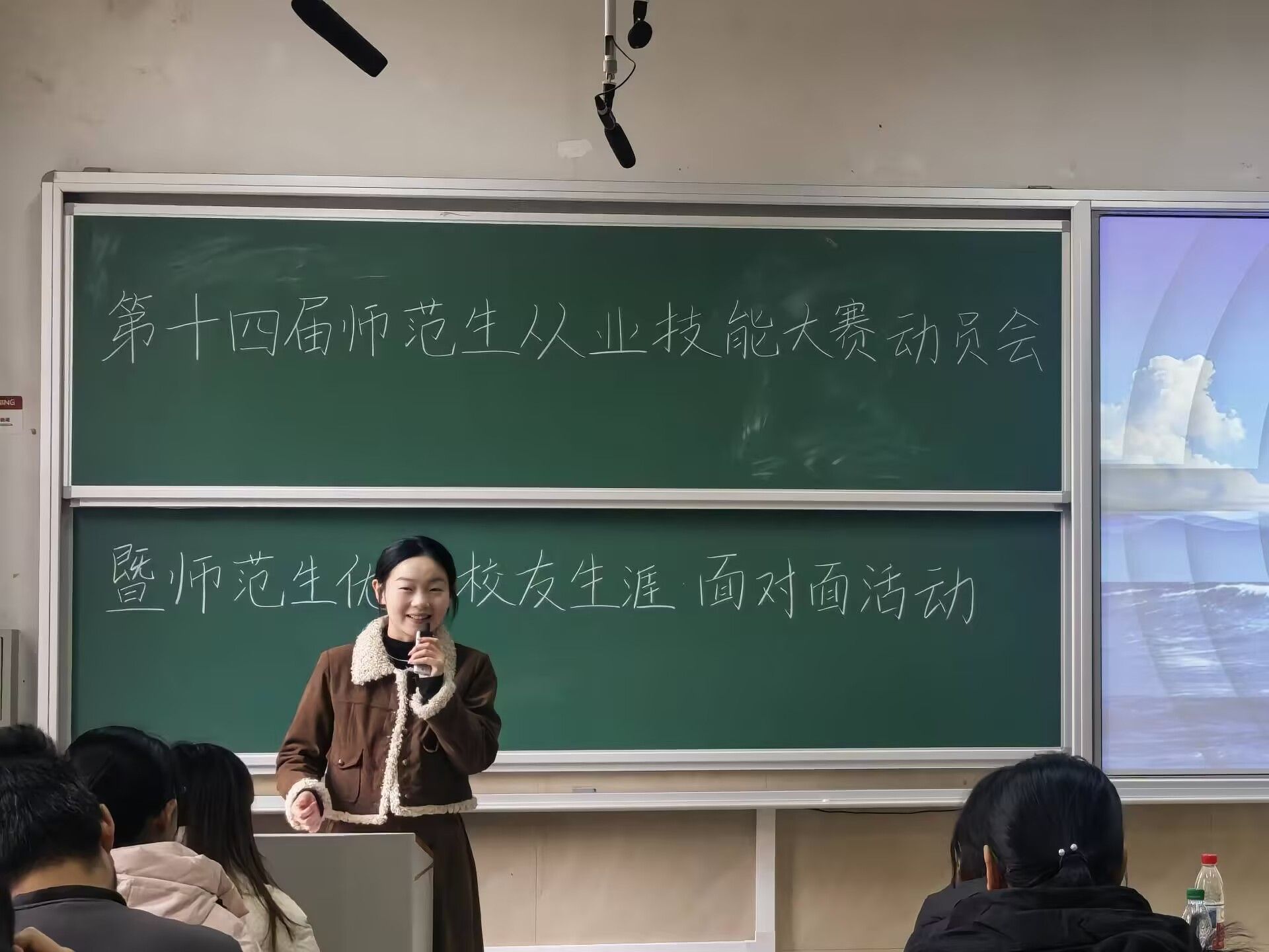 张沂红在动员讲话中指出,学院历来重视师范生培养和教育,连续12年在师范生从业技能大赛中取得优异成绩,全体师范生要将技能大赛作为提升自身专业能力和综合素质的重要机会和平台,认真参赛备赛,要以优秀校友为榜样,从他们的学习就业经历中汲取奋进力量。