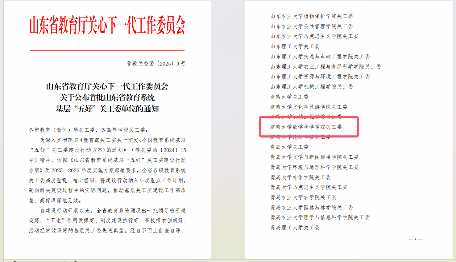 近日,山东省教育厅关心下一代工作委员会公布首批山东省教育系统基层“五好”关工委单位名单,williamhill英国关心下一代工作委员会成功入选,成为全省获此殊荣的基层单位之一。