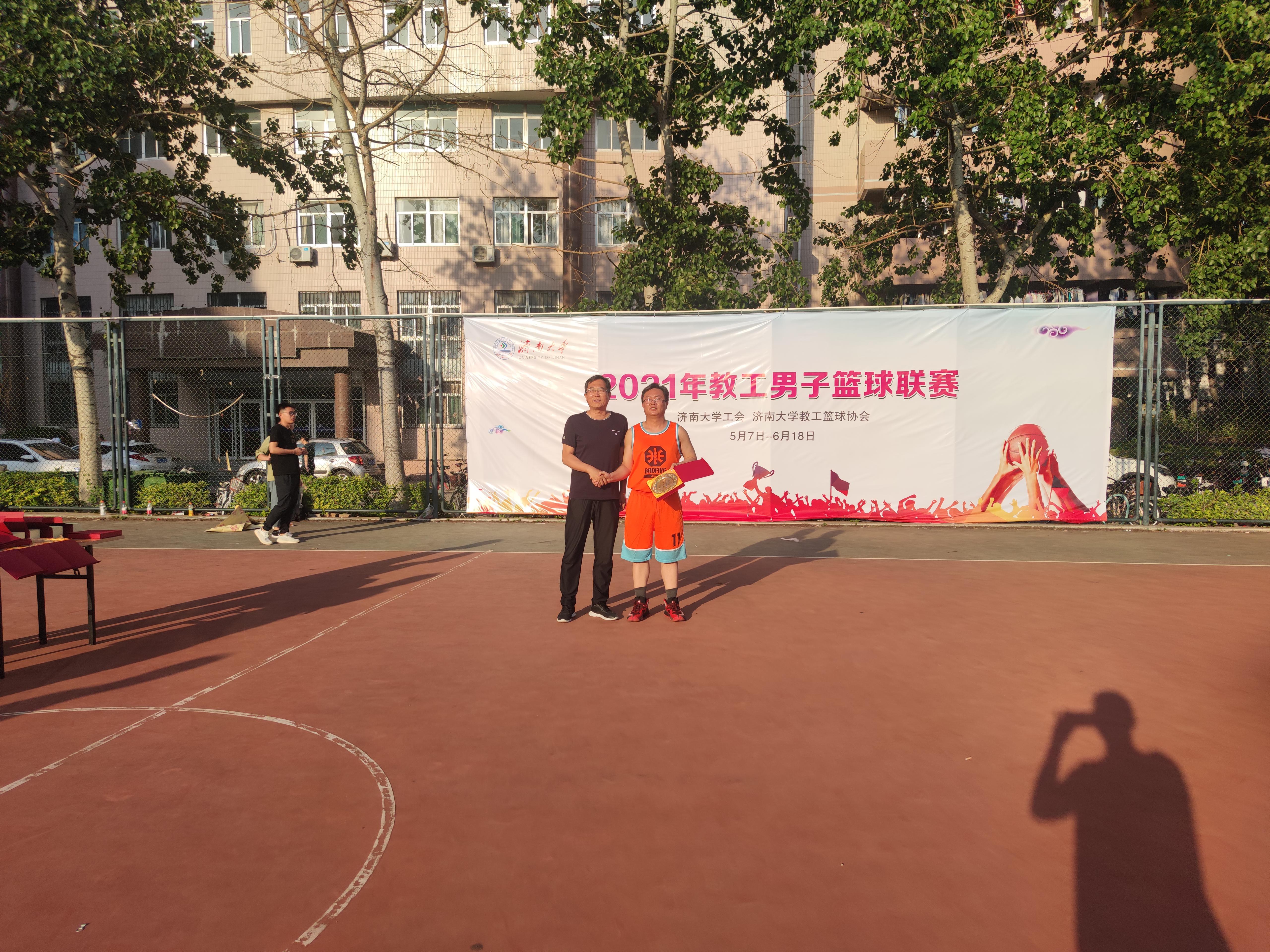 本届教工男子篮球赛,共有20个部门工会组队参加角逐,历时近一个半月的时间,经历了两个阶段的循环比赛,我院王光明、孙鹏举、孙启良、孙一冰、杨健、徐法升、吴立军等教职工代表学院参加比赛。学院办公室主任刘成立担任篮球队教练,全程指导训练、比赛。学院党委书记侯启海多次亲临赛场,为队员们加油助威。在学院领导的关心下,在全体队员的共同努力下,先后击败了科研平台、机关三、后勤处、商学院等代表队,荣获本次赛事的第七名。