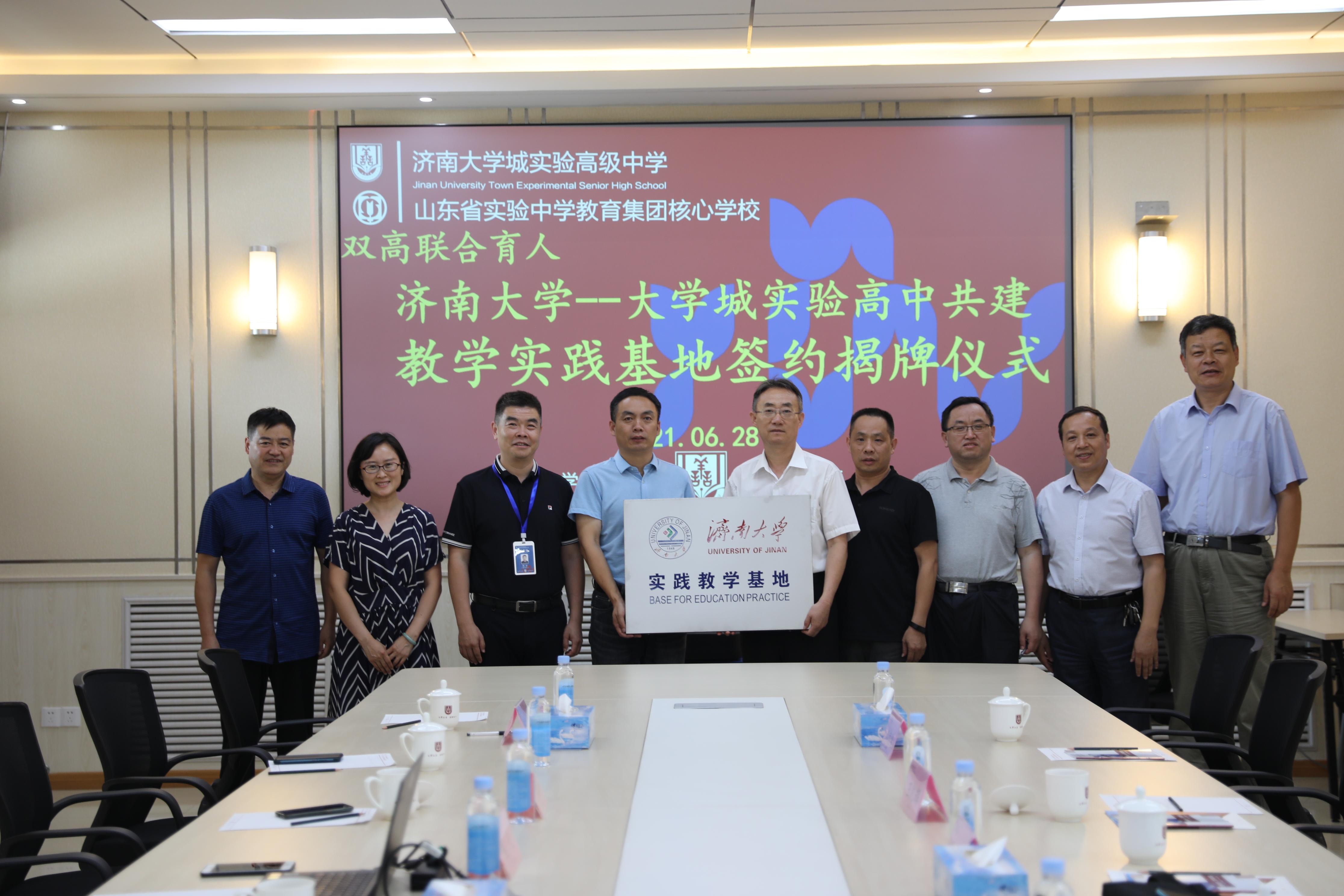 在双方的共同见证下,学院院长管延勇与大学城实验高中郭福祥副校长签署合作协议,共同为教学实践基地揭牌。