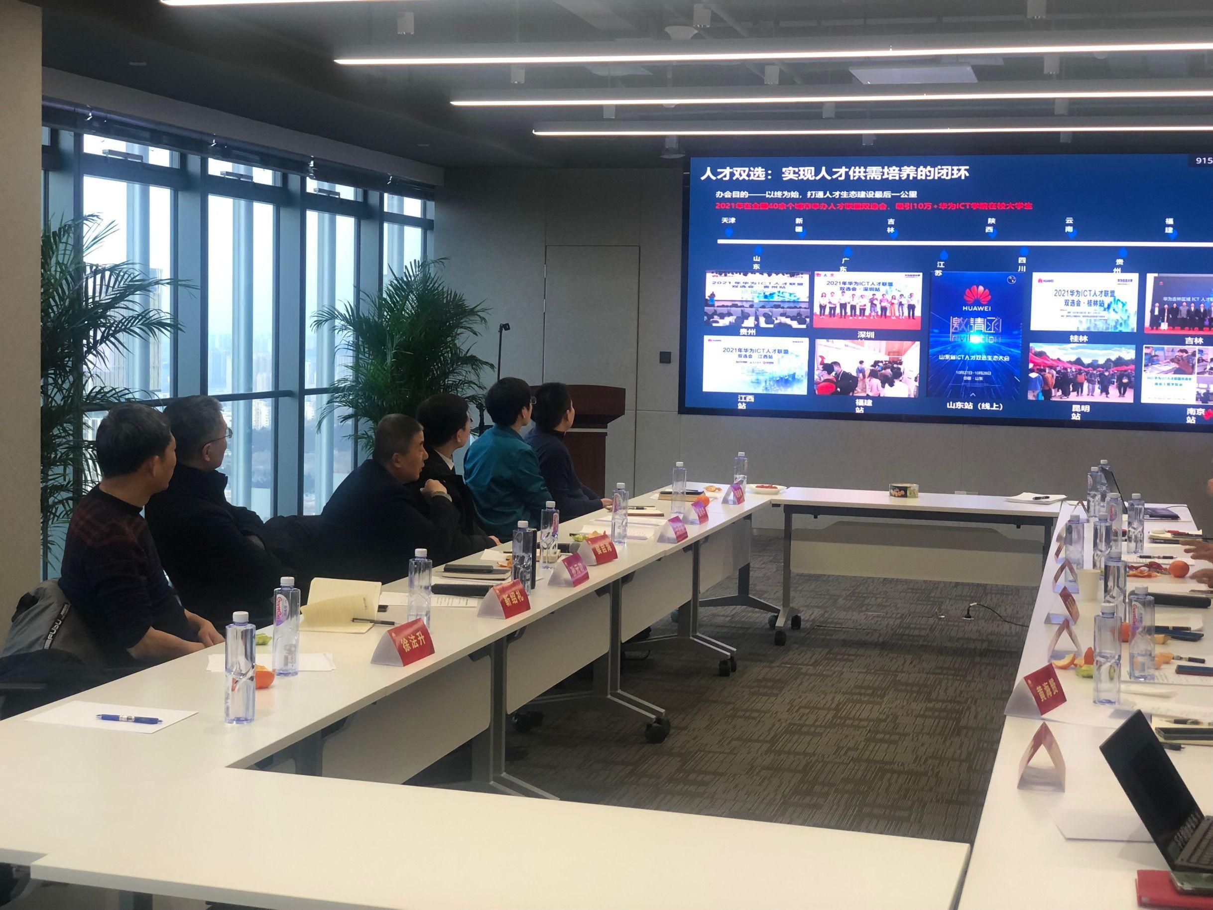 李成杰总经理对williamhill英国一行到访表示热烈欢迎,详细介绍了华为山东终端业务部的基本情况。徐胜总监简要介绍了华为终端BG的相关情况以及人才发展分享。学院党委书记侯启海对华为山东终端业务部的热情招待表示感谢,详细介绍了williamhill英国的学科概况、人才培养以及专业建设情况,希望在专业建设和学生就业等方面进一步加强校企合作。学院院长孙元功希望双方能以今天的活动为契机,进一步发挥自身优势,创新合作机制,通过人才培养、实习实践等方式实现校企协同育人,达成双方共赢。