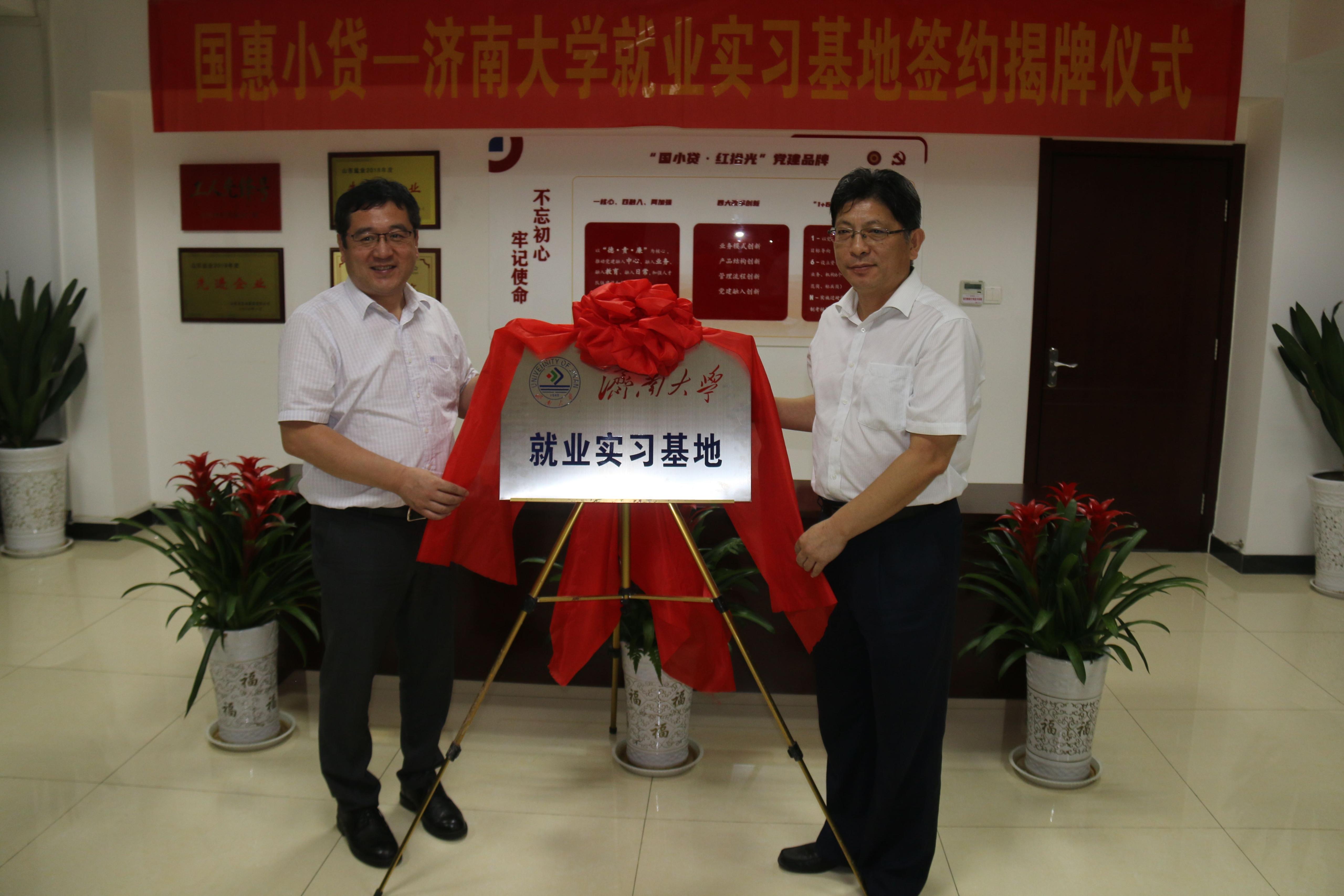 在山东国惠小额贷款有限公司,单一春介绍了公司“十四五”战略发展规划、基本情况、党建品牌、企业文化以及人才“引用育留”机制,表达了希望更多优秀毕业生加入企业的愿望。杨景波与杜冰共同为“William威廉英国就业实习基地”揭牌。孙元功、单一春代表校企双方共同签署了《共建William威廉英国毕业生就业基地协议书》。