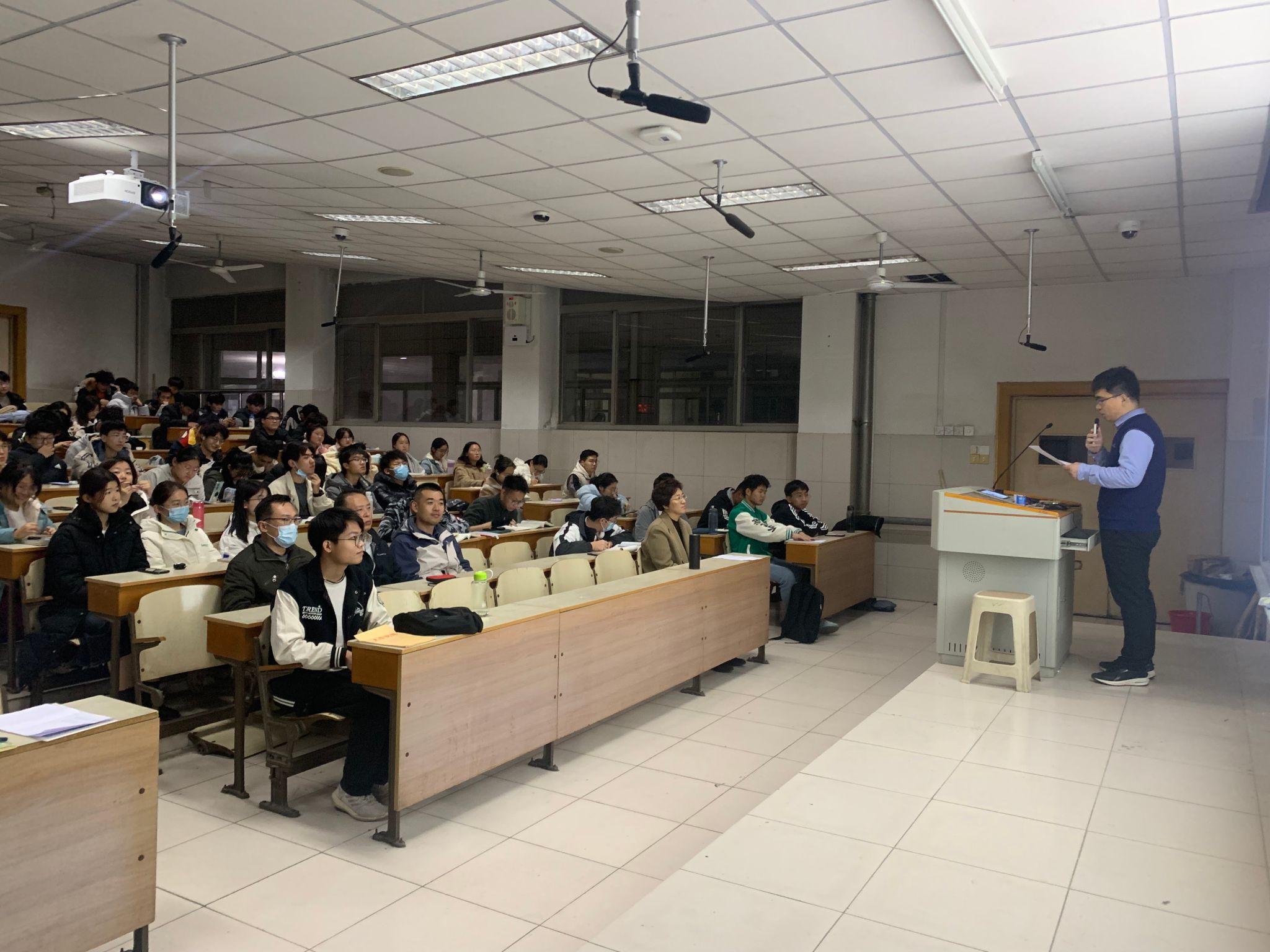 国奖获奖学生孔嘉荣、翁灿标、周亚冰依次分享了自己的参赛经验。与会学生听得津津有味,对蓝桥杯大赛和编程产生了浓厚的兴趣。蓝桥杯负责老师徐法升老师介绍了备赛安排和假期培训等事宜,并鼓励同学们踊跃报名参加“蓝桥杯”竞赛。
