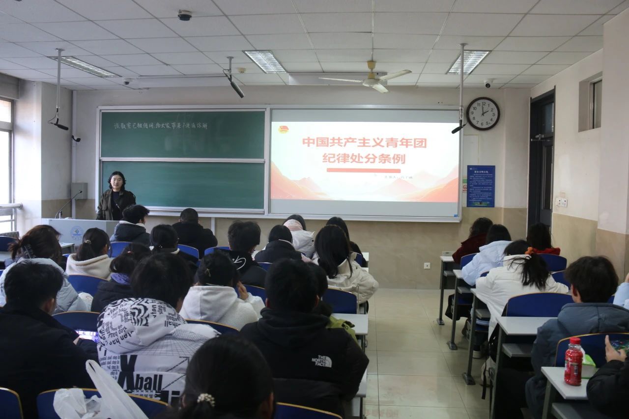 会议伊始,宣讲人高子涵详细解读《中国共产主义青年团纪律处分条例》制定的目的和意义。随后,她详细介绍团纪处分的种类及责任区分,包括对团员的处分措施和对团组织的处分措施。此外,她对违反纪律和违法犯罪行为的团纪处分及其运用规则进行讲解,指出团员们应时刻保持清醒的政治头脑,严格遵守党和国家的民族、宗教政策以及法律法规。最后,她鼓励学生干部们以身作则,加强自身学习,认真履行职责,不断推动团的工作向前发展。