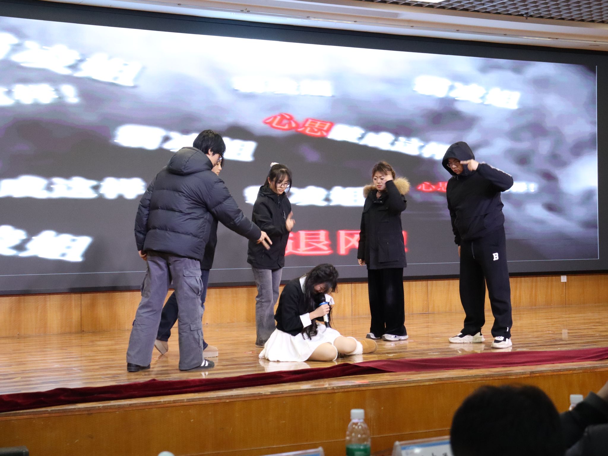 本次心理情景剧大赛以“心理美育,朋辈同行”为主题,旨在通过情景剧的形式,聚焦大学生常见的学业压力、人际交往、自我认同等心理议题,引导大学生关注心理健康,发挥朋辈互助优势,以积极心态面对成长中的困惑与挑战。williamhill英国高度重视此次比赛,广泛动员,精心组织,师生共同打磨剧本、编排表演。演出作品《同学,你滤镜碎了!》聚焦当代大学生在人际交往、自我认知等方面的困惑与焦虑,讲述了主人公林晚因网络焦虑和主观偏见误解他人、随意给他人贴标签,与同学爆发激烈争吵,在打破偏见滤镜得知真相后真诚道歉却又引发他人对自己的网络暴力,最后好友挺身而出,选择原谅与帮助,林晚最终懂得在人际交往中只有打碎偏见的滤镜,那些藏在背后的戾气与偏见,才会被理性与善意抚平。演员们以饱满的情感和细腻的表演,将人际交往时的焦虑与朋辈互助的温暖融入剧情之中,传递出“打破偏见滤镜,拒绝网络暴力,用理性丈量世界,用善意温暖他人”的核心主旨,既赢得了评委的认可,也收获现场观众的热烈支持。