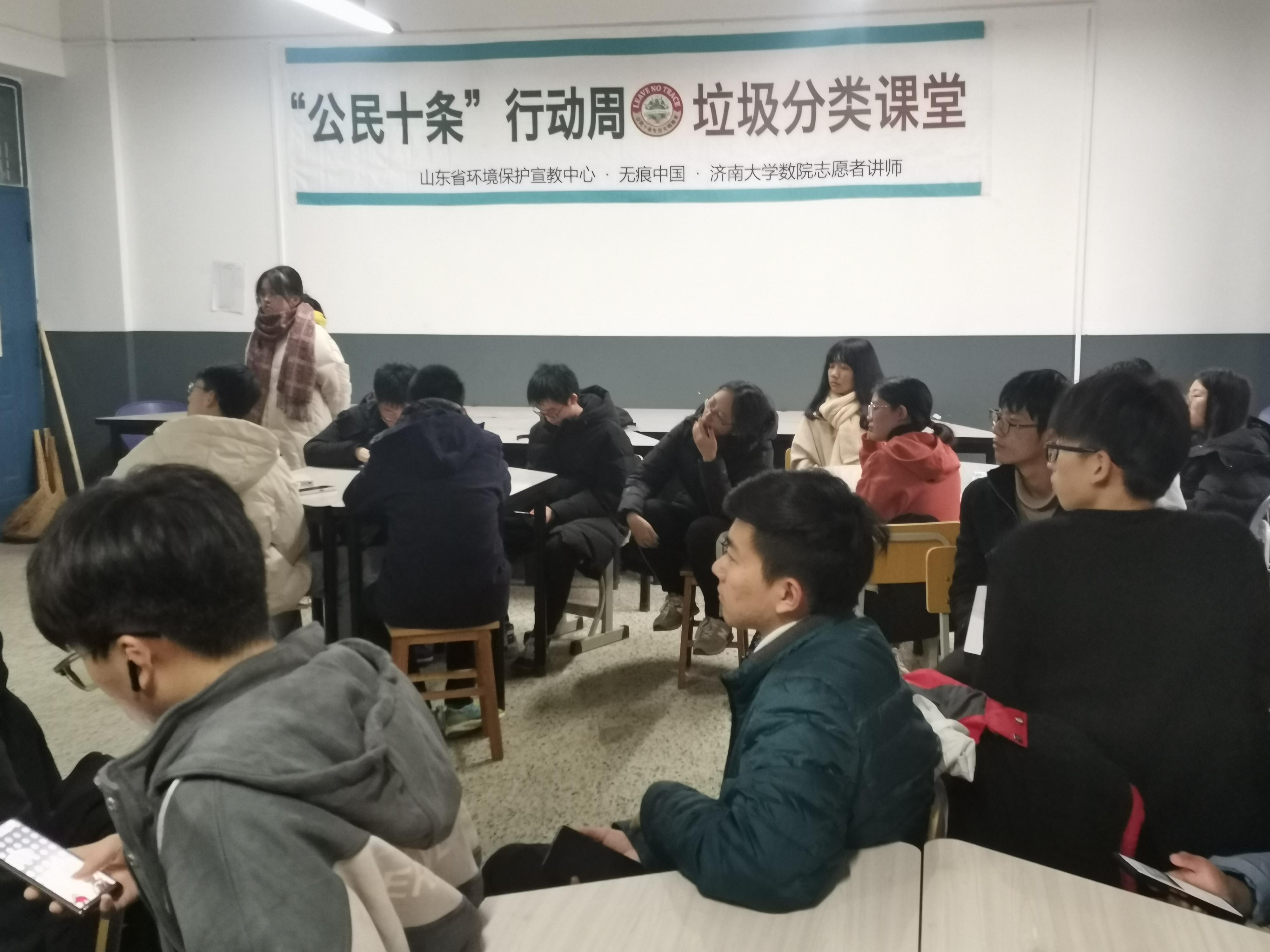 为让同学们认识到垃圾分类的重要性,掌握垃圾分类的方法,williamhill英国于12月1日下午2点于四教503举行“公民十条”生态文明工坊。该活动由无痕中国环境中心和williamhill英国青年志愿者协会合作主办,并由青年志愿者协会志愿者担任讲师和助理工作。