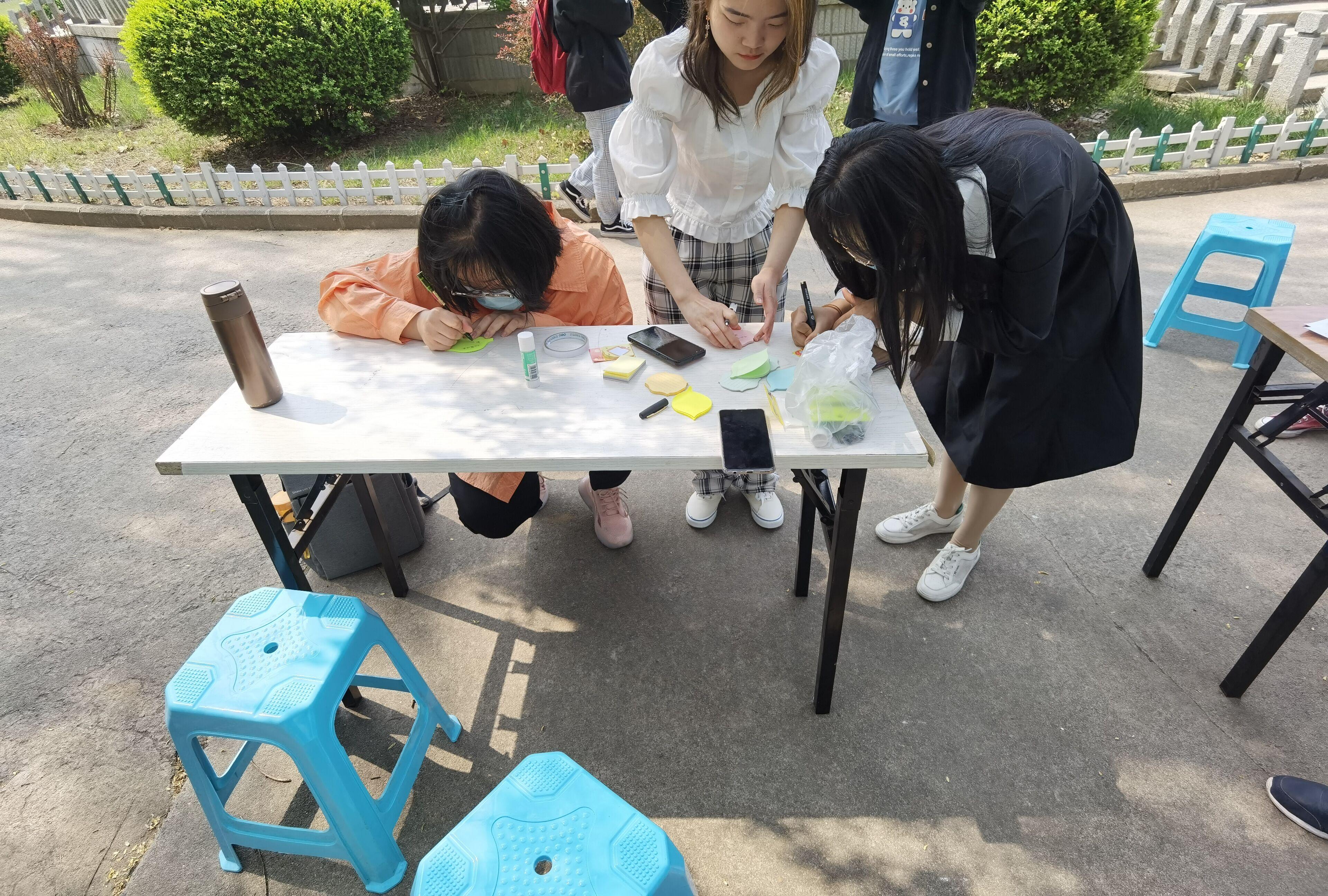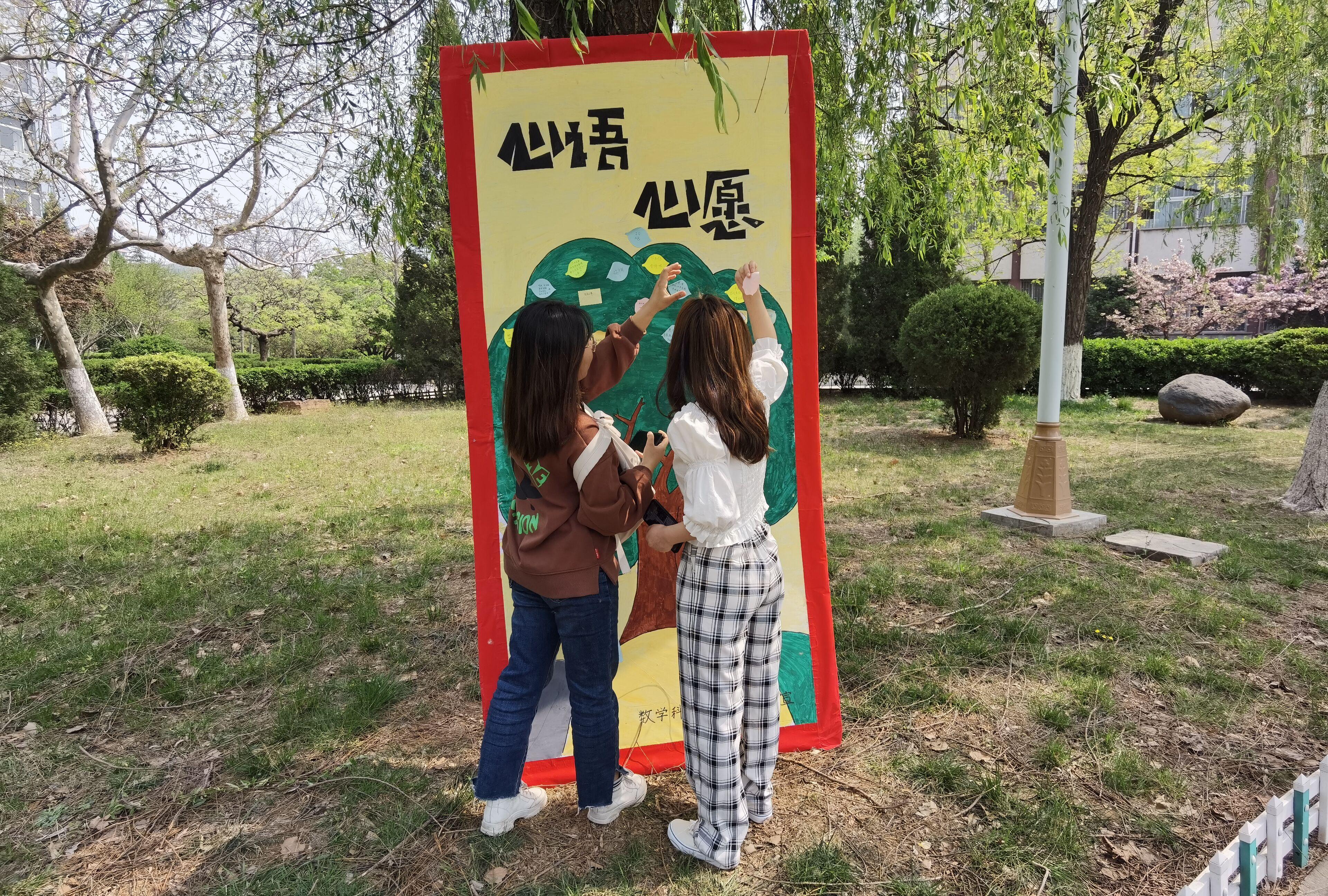 在活动开始,心理志愿者协会的同学们就在绿泉广场准备好了展板、桌子和便利贴,等待着同学的到来。上午九点活动准时开始,首先,他们在工作人员的引导下在展板上签上自己的名字,之后便在准备好的便签上写下自己的梦想、对自己未来的憧憬或者对家人的祝福等,最后将便签贴在展板上。在活动过程中,同学之间互相交流,抒发自己的感情,表达自己的想法。活动期间,心理志愿者协会的人员也在现场倾听同学的梦想、遗憾,调节、引导同学们的情绪。此次活动在温馨的气氛中圆满成功。