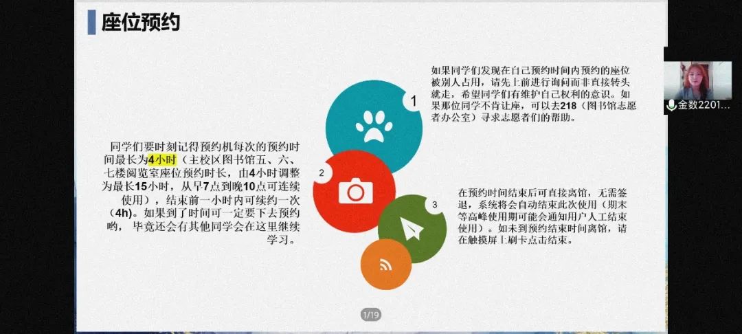 在同学们了解图书馆概况之后,讲解员继续向同学们介绍检索大厅电脑、图书检索系统、座位预约机、图书借还机和消毒柜等仪器的使用方法。今年,在讲解和演示的基础上,图书馆还开发了在线闯关答题系统,更加生动全面地帮助同学们了解图书馆的资源和服务。
