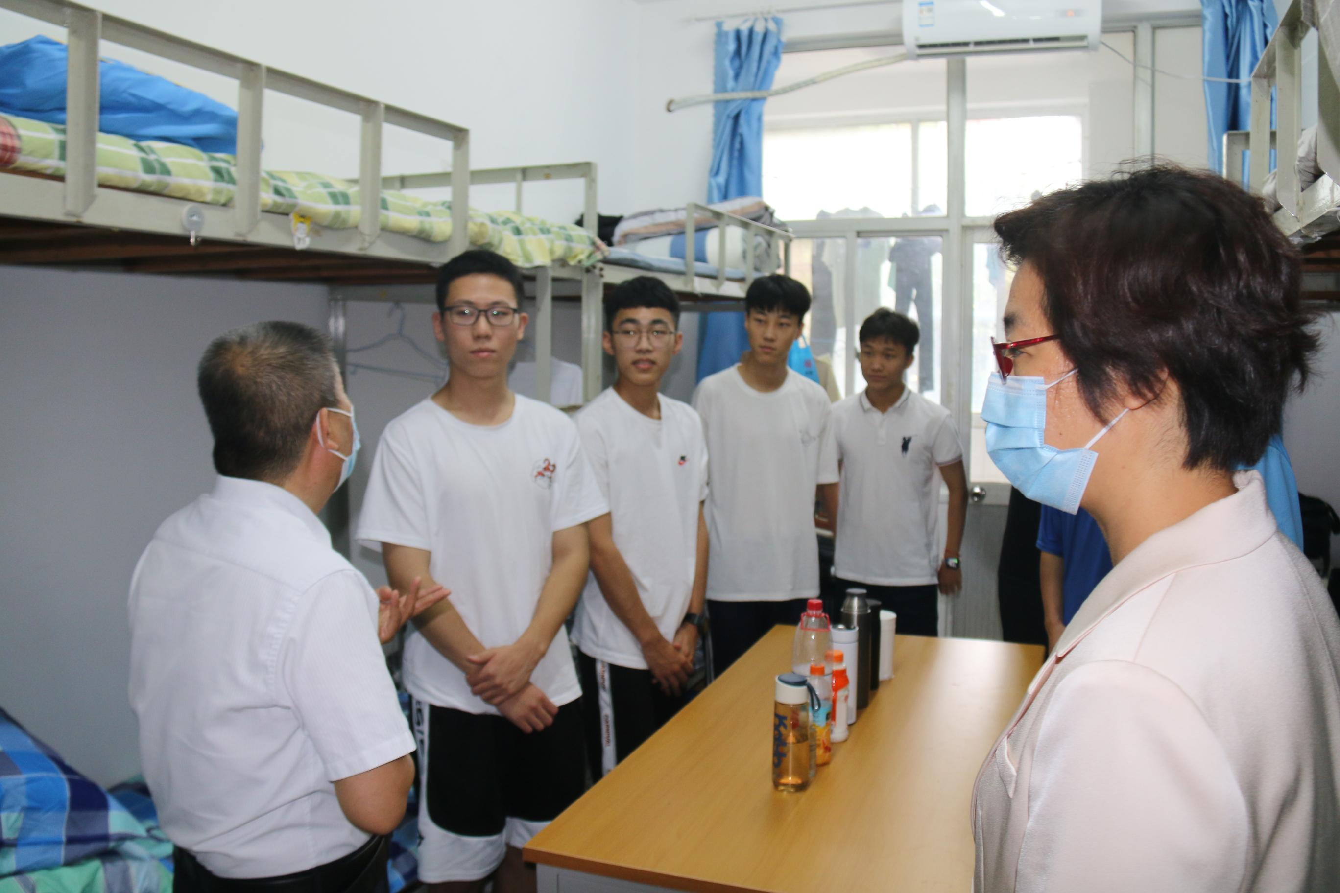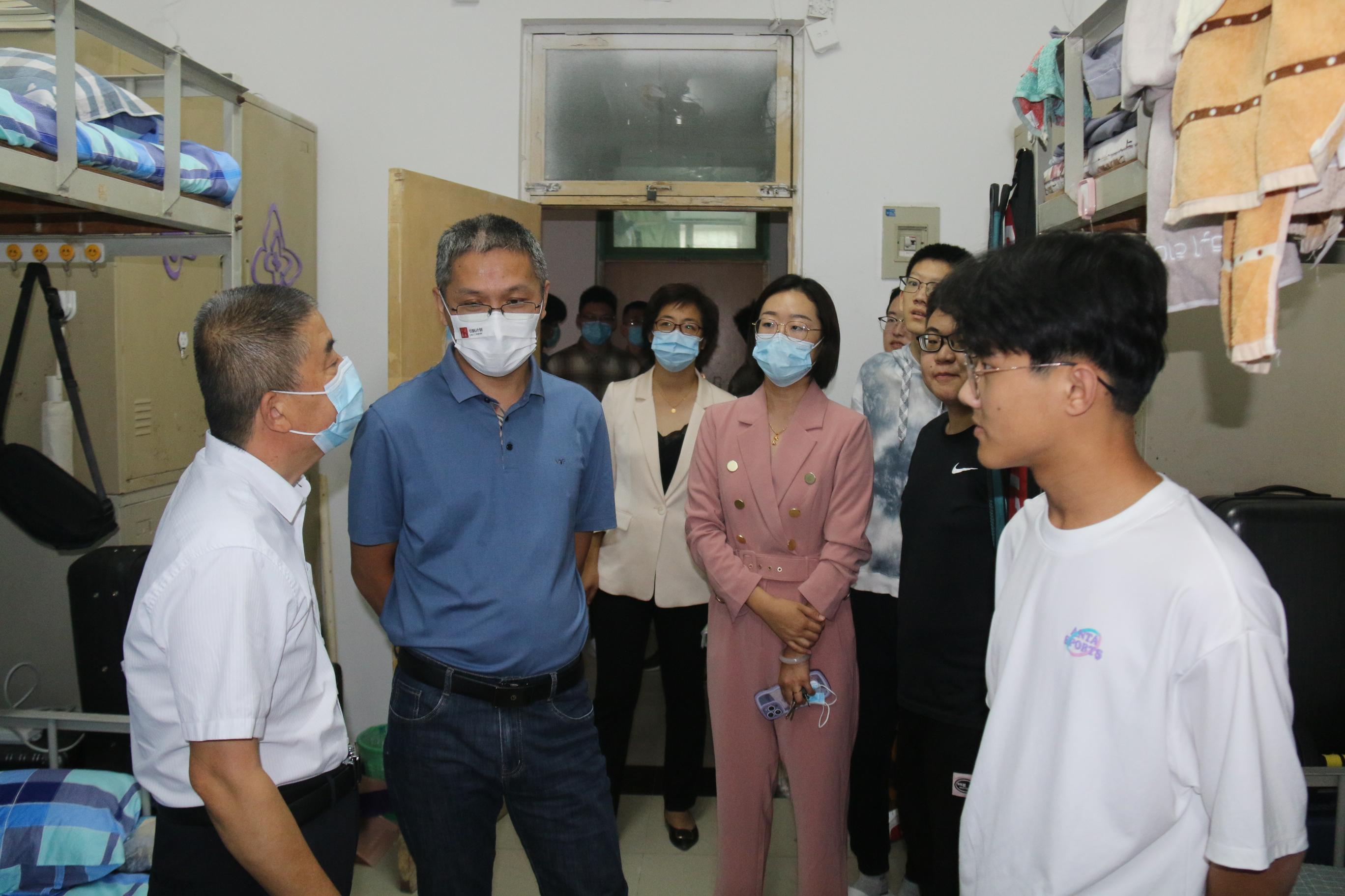在公寓内,学院领导挨个宿舍与同学们进行交流,检查宿舍是否存在安全隐患及宿舍卫生和门锁窗户存在的问题,对于公寓安全、卫生环境以及基础设施运行情况进行详细检查以保证新生的居住环境舒适与安全。新生辅导员姬磊还详细对新同学们说明了在宿舍的注意事项,除此之外,团委书记于洋老师和党委副书记副院长张沂红老师与学生进行亲切友好的交谈,询问新生的家庭情况以及适应状况,让初入这个陌生环境的新生们感受到来自学院的温暖与关怀。此外党委书记侯启海勉励同学们养成良好的生活与学习习惯,适应新环境融入新集体。与此同时,新生班主任也走访了所有班级宿舍,教育学生提高安全意识并与同学们畅谈未来设想与规划且提出了自己针对性建议。