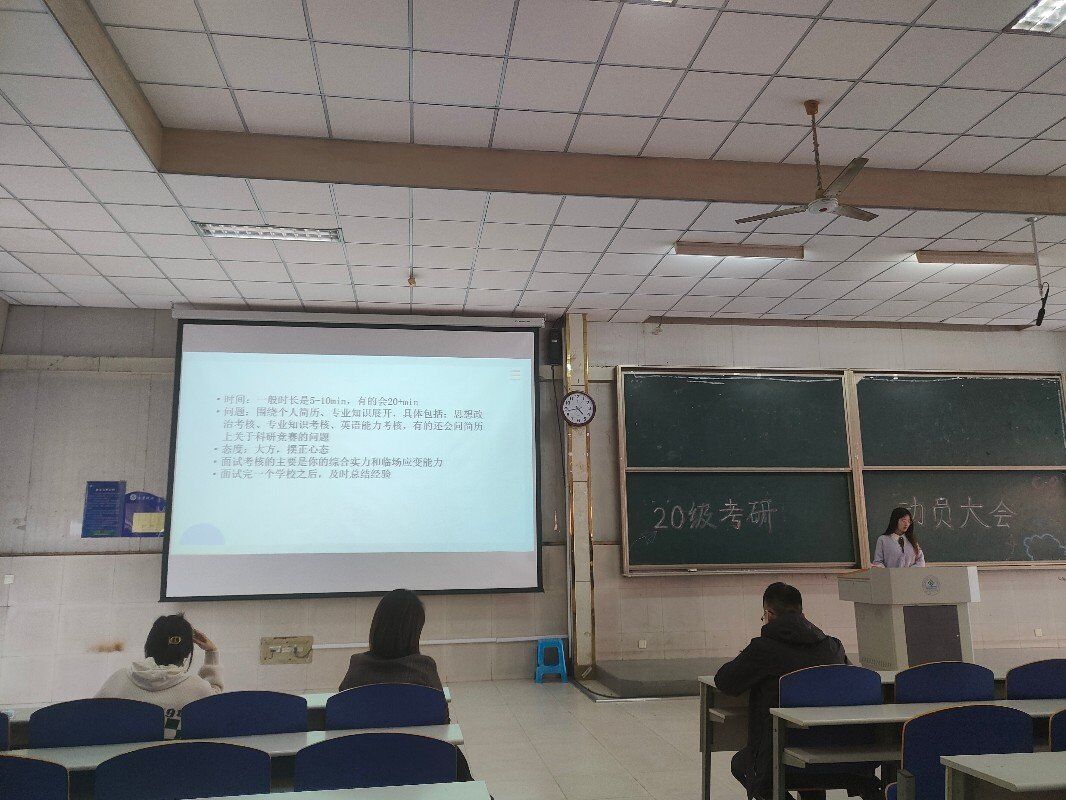 此次动员大会,使同学们更加了解了保研过程以及考研准备工作。优秀学长学姐的经历和经验激励了在座的同学们,使同学们对考研的认识更加深入,也使同学们学习到了很多学习方法和经验,为后续的学习指明了道路。