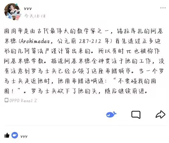 活动期间,许多同学积极参与,通过拍摄照片、书写相关故事等的方式展示他们身边与“π”元素有关的事物和故事。在“π”主题摄影展中,数学2204班的刘凤举同学分享了她的独特作品,多彩的插画被制作成手账小心收藏,其中的π元素醒目而富有趣味;在“π”故事分享中,金数2202赵薇同学将阿基米德为数学做出的贡献以及他深深陶醉于数学世界的奇妙经历展现在我们面前,让我们领略到数学迷思的独特色彩。在同学们的分享下,丰富多样的π元素、有趣奇妙的π故事,让我们看到了同学们对数学的热爱,感受到了数学对于人们的神奇魅力。