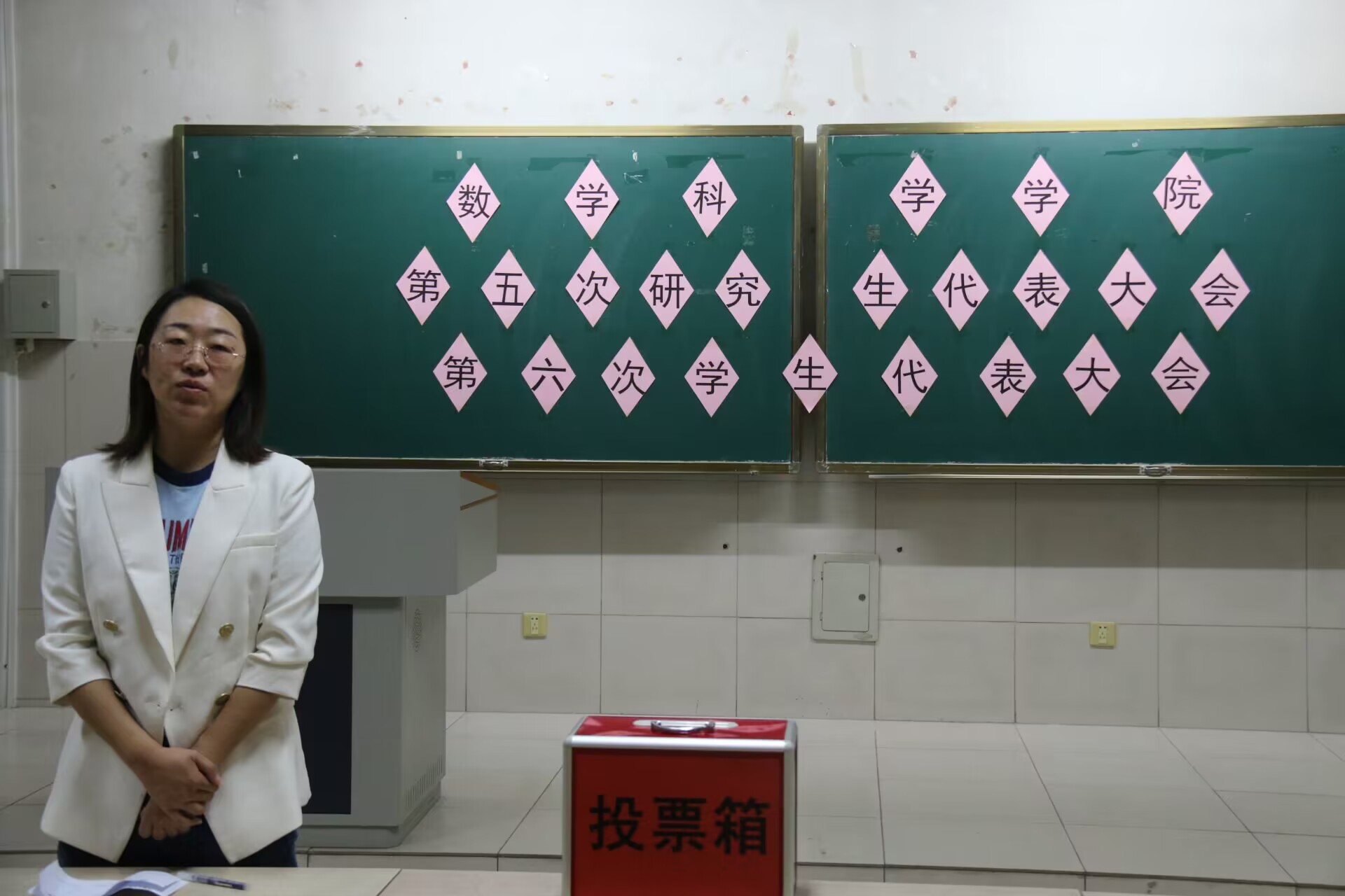 大会伊始,主持人介绍本次大会的主要议程并说明选举要求,接着依次向参会人员介绍候选人的基本情况。大会严格根据《williamhill英国学、研代会选举办法》设置监票人、计票人,并依据规定采用无记名投票方式进行差额选举。在于洋老师的监督指导之下,学生们依次有序将选票投入红色的投票箱。本次投票工作以民主选举的方式顺利有序进行,是一次公开、公平、公正的选举。各位参会人员珍视参与学生代表大会的权利,认真履行职责,积极参与选举工作。最终由于洋老师公布会议选举产生的学生代表,全场响起热烈的掌声。会议的最后,于洋老师总结了过去一年学生的建设性意见对学院的正向推动,并在黑板书写了接收学生建议的具体邮箱及办公室地址,鼓励大家积极建言献策参加学校的改革建设,为提升和完善各方面的工作贡献学生力量。