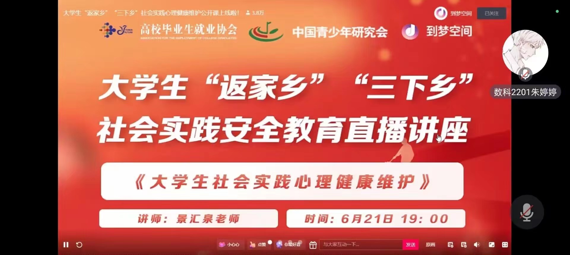 为了加强大学生在暑期社会实践中的安全意识,做好实践前的培训指导工作,6月21日,williamhill英国积极组织各实践队的同学们观看由学校团委联合到梦空间承办的2023年大学生“返家乡”、“三下乡”社会实践安全教育直播专题讲座,倡导同学们重视实践安全教育,推动实践教育的规范化、有序化、科学化开展。williamhill英国各实践队的同学们通过腾讯会议聆听此次讲座。