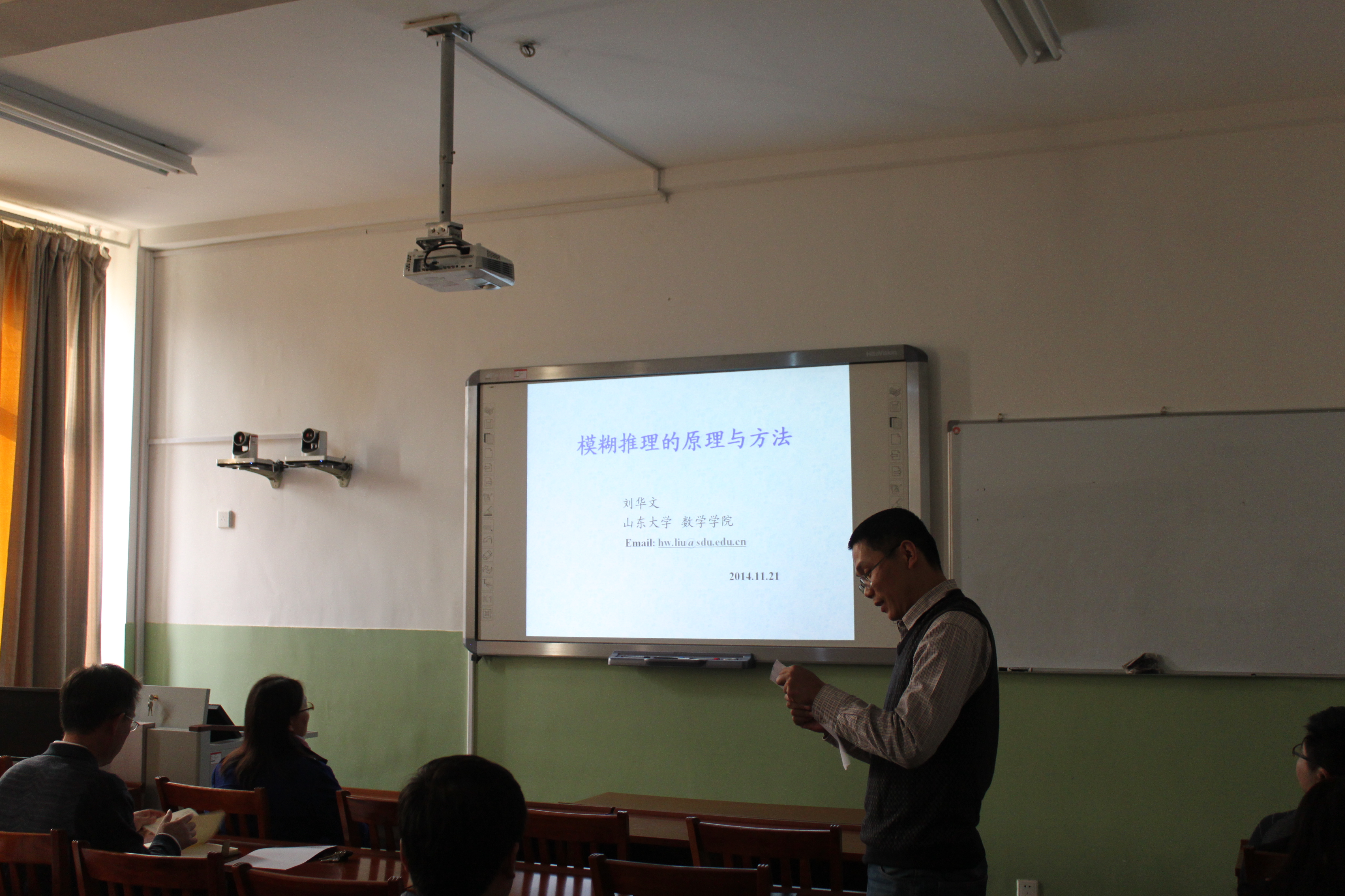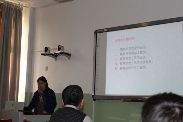 11月21日,山东大学数学学院教授、博士生导师、控制与系统科学研究所所长刘华文教授应邀来我校参观访问,并在williamhill英国微格教室做了题为《模糊推理的原理与方法》的学术报告,数学院教师和研究生30余人参加了本次报告会。