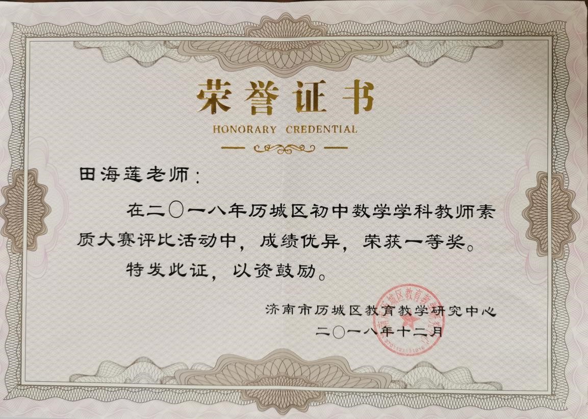 亲其师,信其道。学生对我的喜爱,正是我专业成长的动力。在专业提升的道路上,我不停的探索,从三说、四种能力建设、作业改革,到活动课程,我努力参与各项活动的开展,通过实践来提升自己的业务水平。我勇于挑战自己,多次承担学校教给的视导课、观摩课、公开课,积极参与课题研究,让自己不断成长。多次撰写论文,获得省市一等奖。2011年获得”历城区数学优质课一等奖”。2012年、2017年两次获得”历城区教学能手称号”。2014年成为”历城区数学中心组成员。”2016年、2018年两次获得历城区数学学科素质大赛一等奖。2017年、2021年两次获得山东省“一师一优课,一课一名师”省级优课。