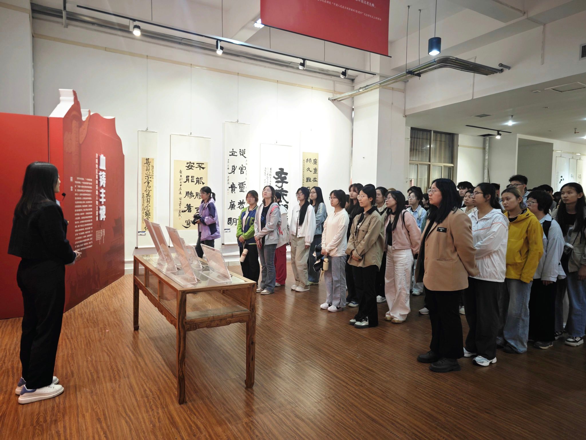 在讲解员的介绍下,同学们依次参观了“坚持真理,坚守理想”“践行初心,担当使命”“不怕牺牲,英勇斗争”“对党忠诚,不负人民”“牢记嘱托,砥砺前行”等五个单元。展览以伟大建党精神为主线,用182件革命文物讲述39位革命英雄和四个团体的故事,用历史说话、让文物发言。王尽美不辞辛劳,似燎原星火传播进步思想;邓恩铭于艰难环境中,推进早期党组织建设。他们奔走四方,用生命践行共产党人的初心使命,彰显“革命理想高于天”的崇高境界。“济南第一团”“济南第二团”的将士们在枪林弹雨中冲锋陷阵,用热血铸就济南战役的胜利丰碑,不仅是对革命精神的生动体现,更是对后来者牢记初心、砥砺奋进的无声嘱托。一张张老旧照片、一件件斑驳文物,承载着共产党人对党忠诚、不负人民的庄严承诺,使同学们深受触动、深受教育,激励着同学们铭记历史、砥砺前行。