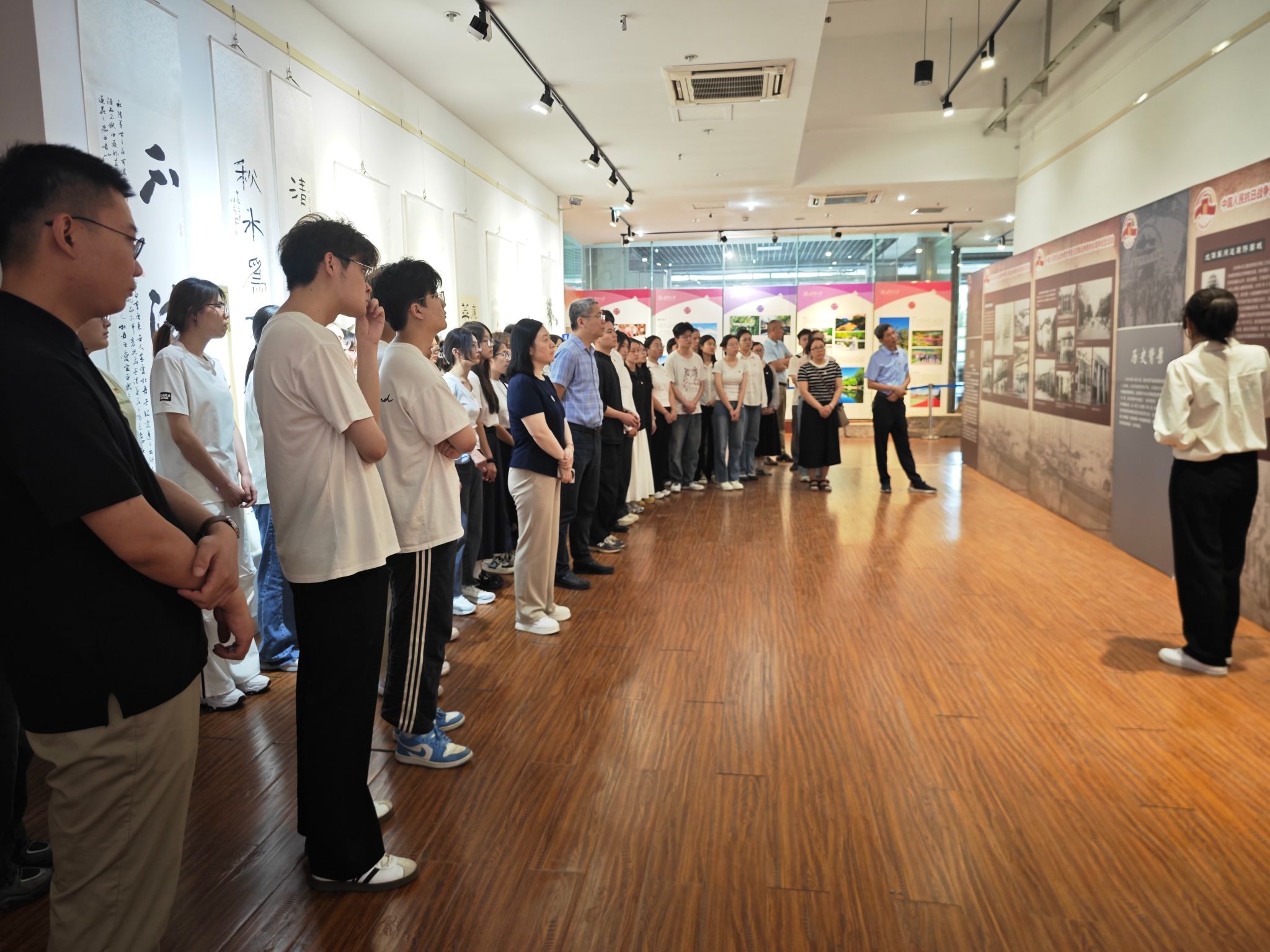 为有效推进深入贯彻中央八项规定精神学习教育走深走实,教育引导师生勿忘国耻、警钟长鸣,厚植爱国主义情怀,williamhill英国党委于6月12日上午组织师生赴舜道艺术馆参观济南惨案档案图片展。学院党委班子成员、组织员、辅导员和师生党员、入党积极分子代表等70余人共同重温惨痛历史、接受爱国主义教育。