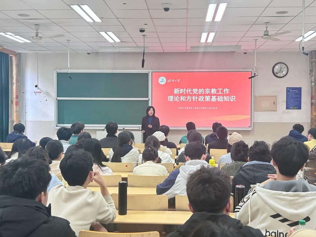 为深入学习贯彻习近平总书记关于宗教工作重要论述精神,帮助学生党员和入党积极分子准确把握新时代党的宗教工作理论和方针政策,切实提升思想政治素养和辨别是非能力,11月5日,williamhill英国在第十教学楼104室举行新时代党的宗教工作理论和方针政策专题宣讲活动。学校党委统战部副部长刘鑫出席并做专题宣讲,学院党委书记崔英静,党委副书记、副院长张沂红及部分学生党员、入党积极分子共计100余人参加活动。