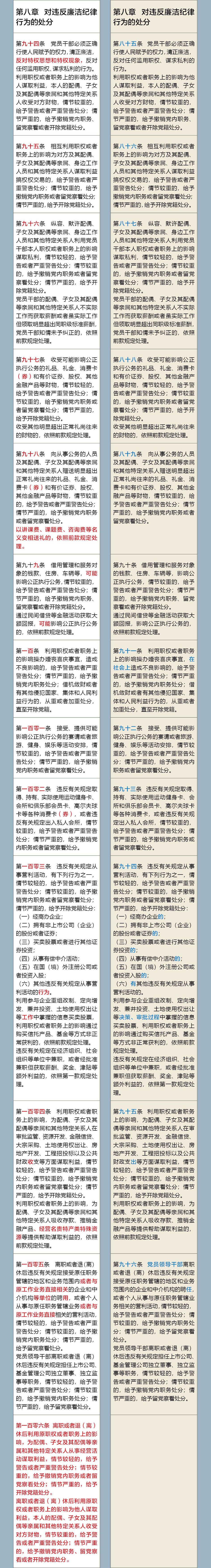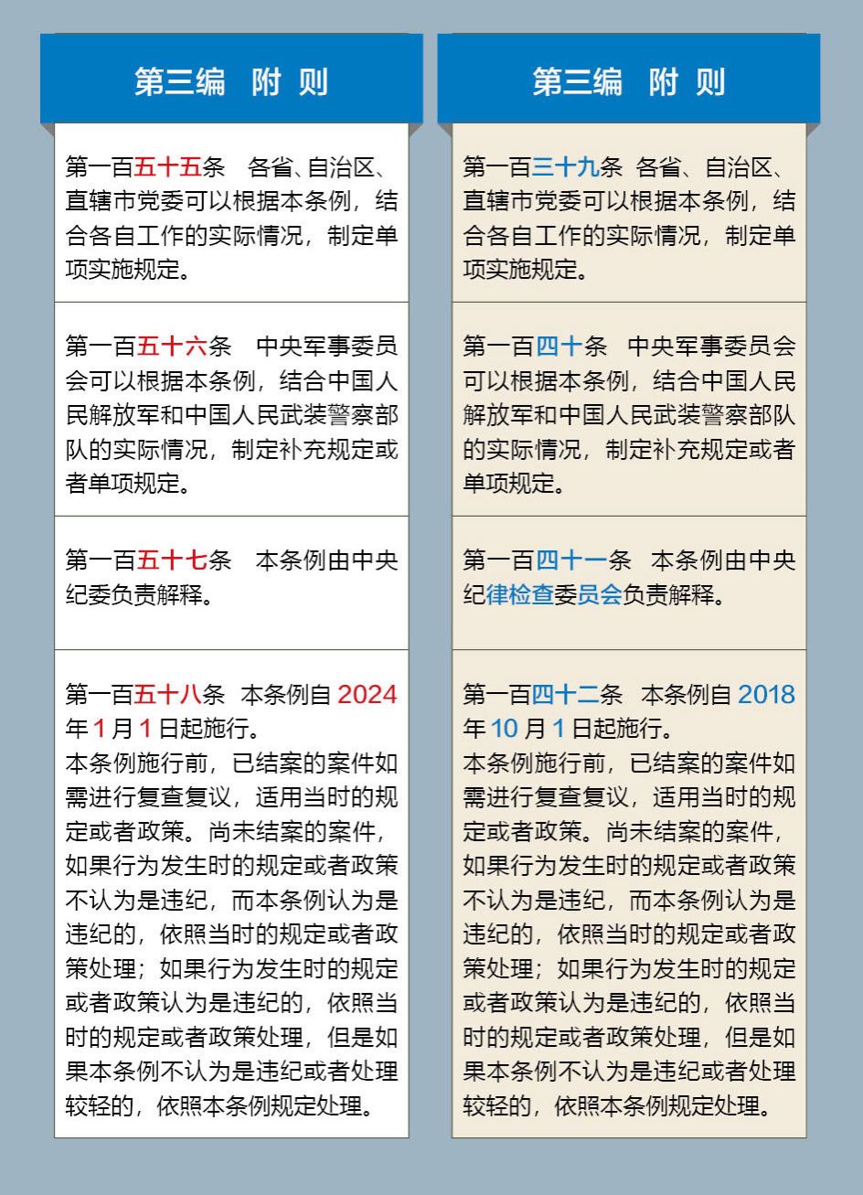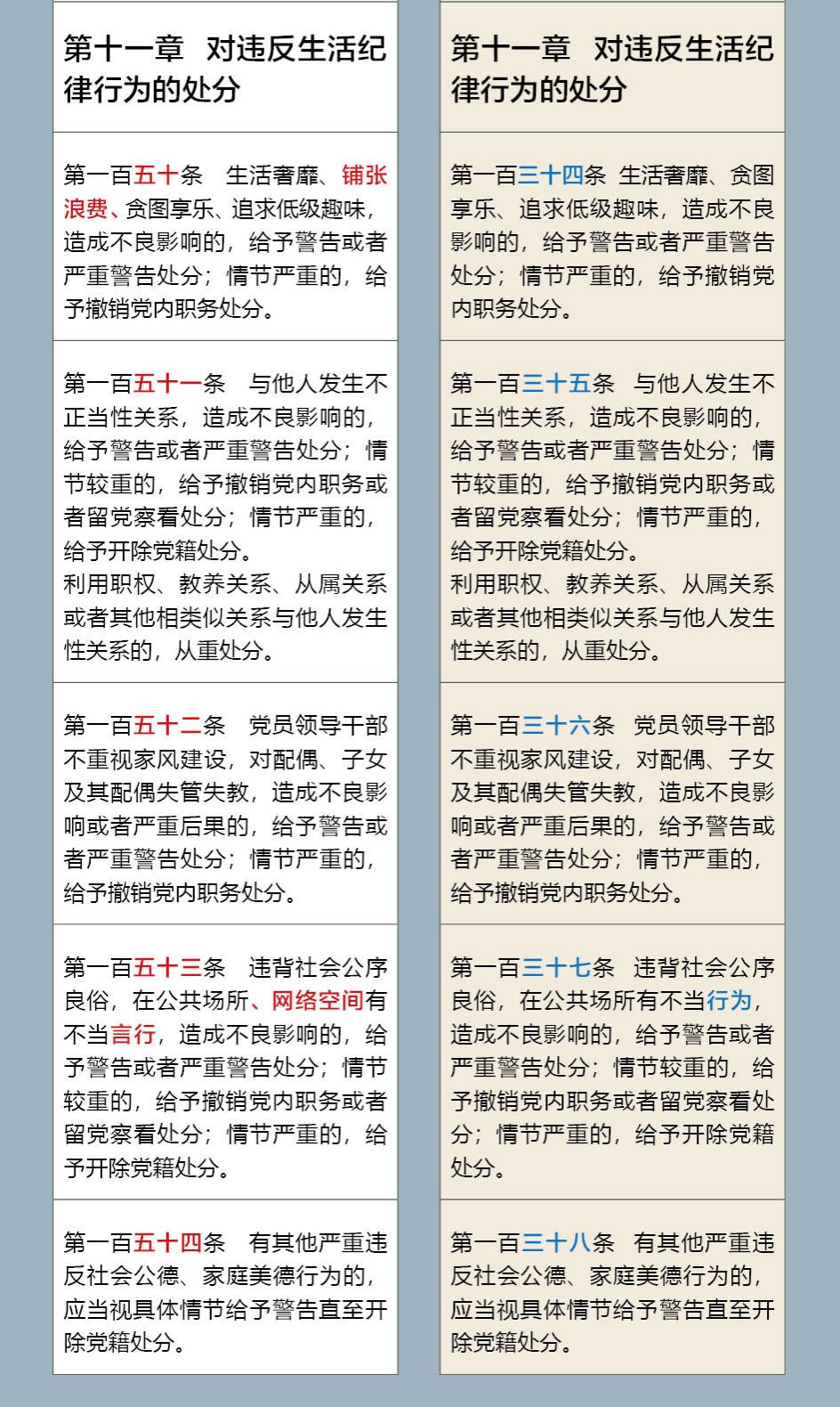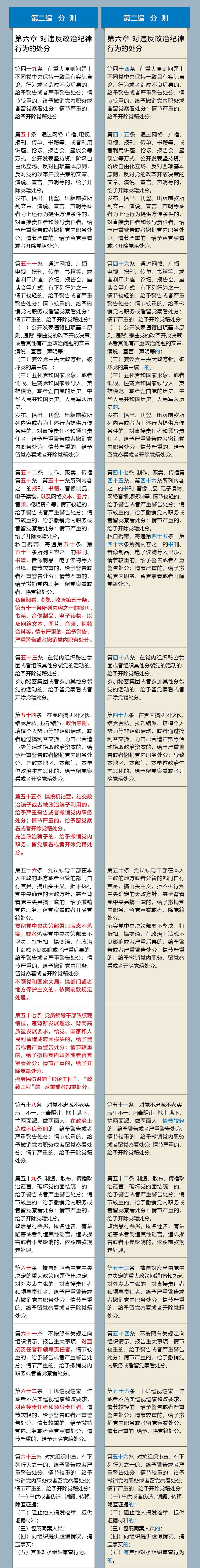 《中国共产党纪律处分条例》修订前后对照表