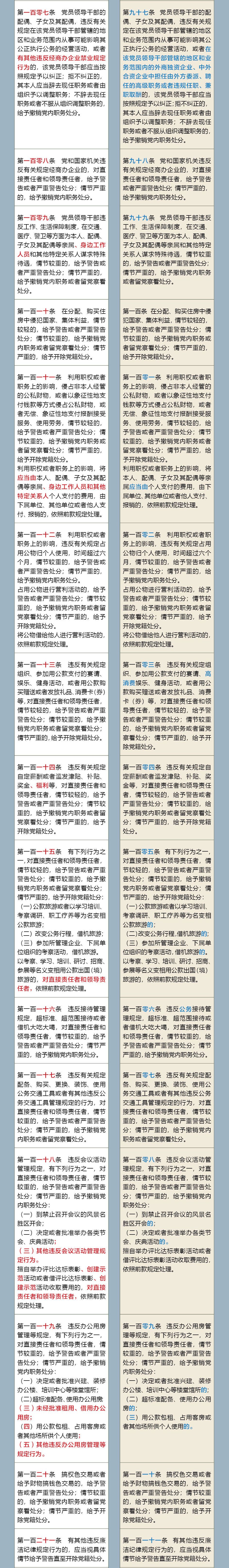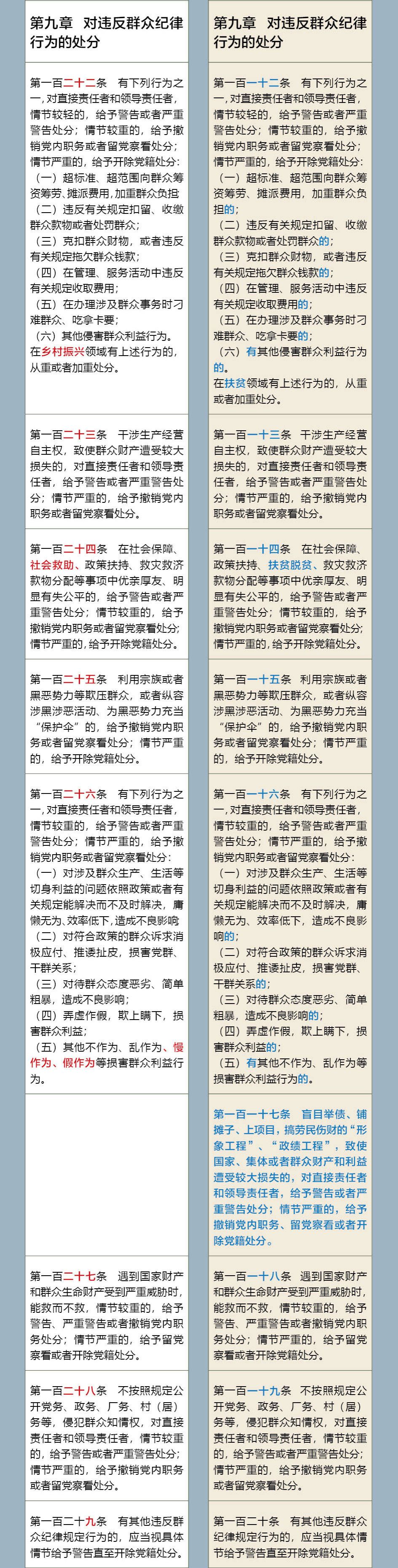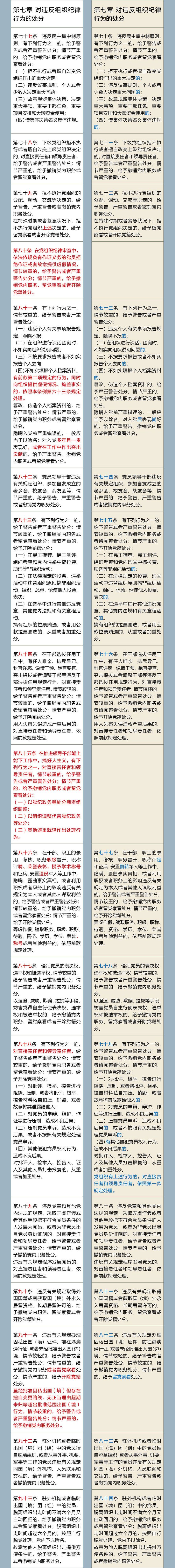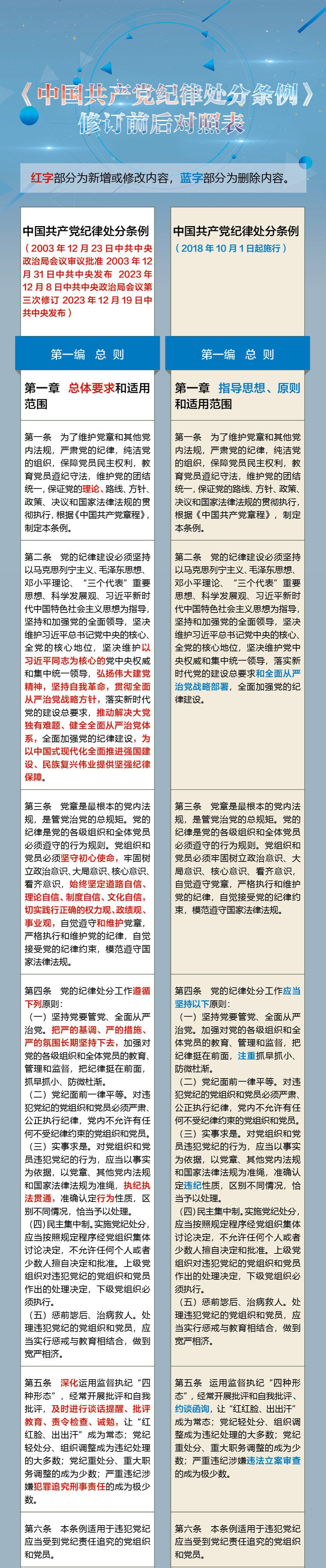 《中国共产党纪律处分条例》修订前后对照表
